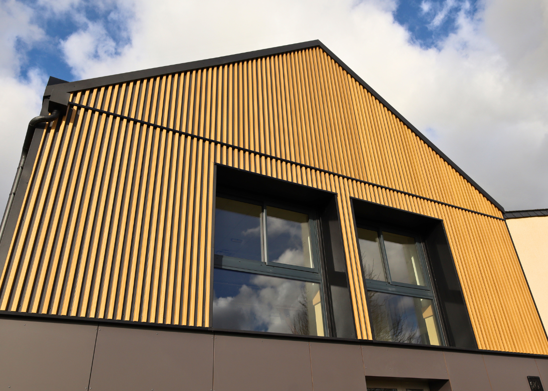 Le projet a également intégré des panneaux Max Exterior gris anthracite, des tôles planes laquées, des bandes de protection EPDM ainsi que la quincaillerie adaptée, garantissant une mise en œuvre fiable et soignée.