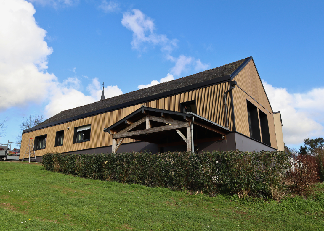 Dans le cadre de la rénovation de la salle municipale de l’Auxence à Villemoisan, CIBA OUARY est intervenu aux côtés de la Menuiserie Charpente Lebreton pour la fourniture de matériaux et d’éléments métalliques dédiés aux façades et aux finitions extérieures du bâtiment.