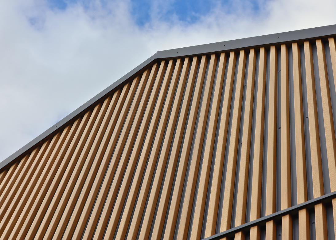CIBA OUARY a fourni un bardage acier Clairvoie’BAC 40×40, finition chêne naturel, permettant de créer un rendu chaleureux et moderne tout en bénéficiant de la résistance et de la pérennité de l’acier.