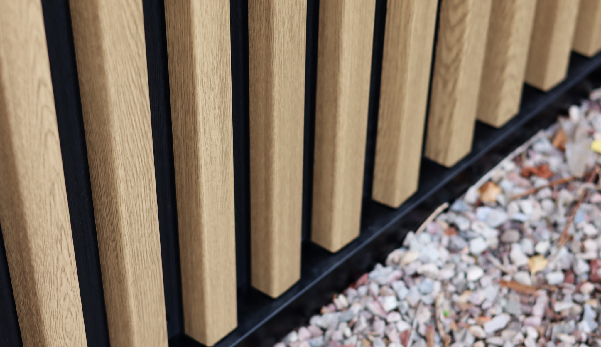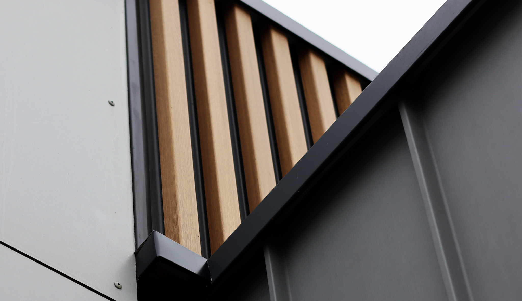 Le projet repose sur l’utilisation d’un bardage en faux claire-voie CLAIRVOIE’BAC, complété par des profils Snap Profil imitation joint debout. La finition chêne clair, associée à des éléments noirs, apporte une touche chaleureuse tout en conservant la robustesse et la durabilité de l’acier. Cette composition verticale renforce la lecture des volumes et dynamise la façade du bâtiment.