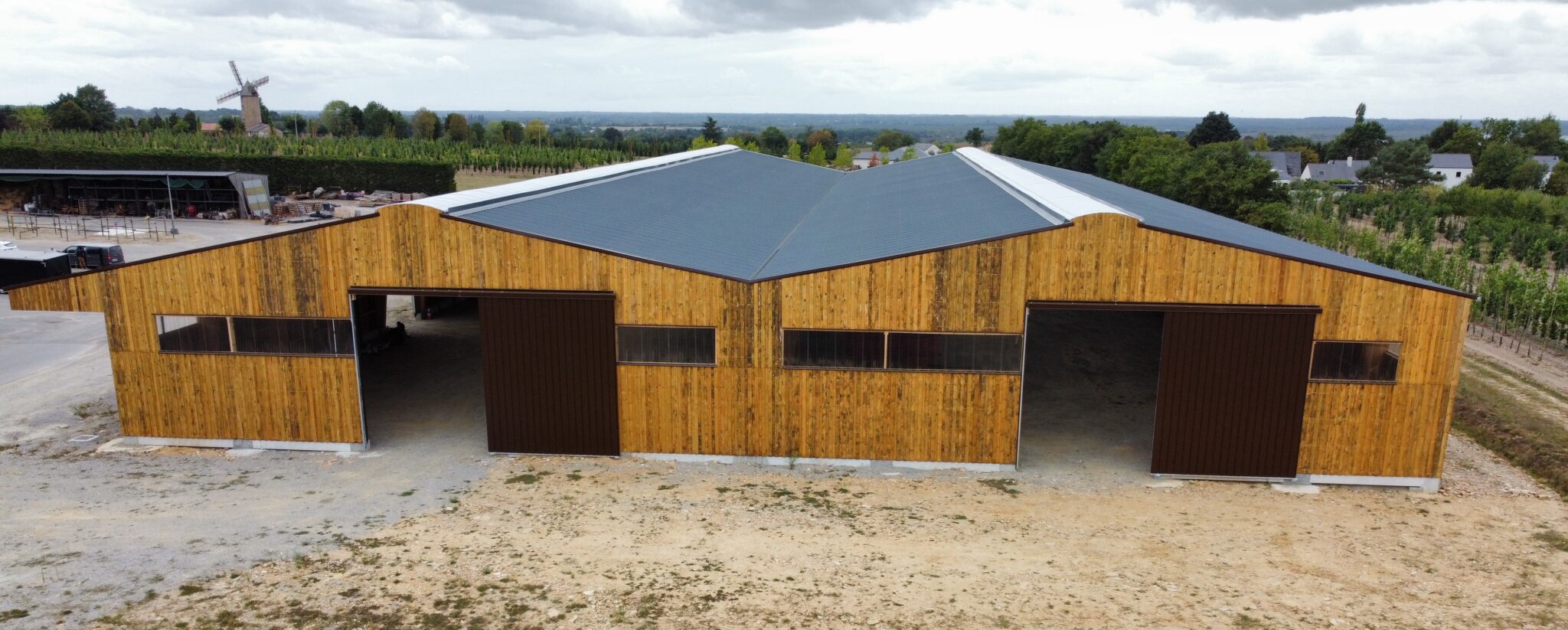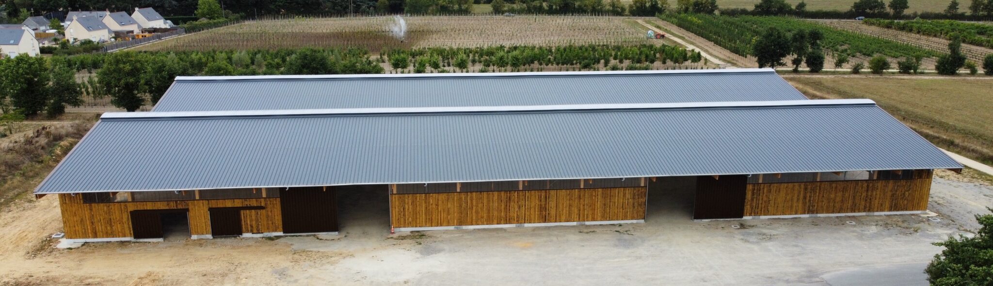Dans le cadre du chantier des Pépinières du Val d’Erdre, CIBA OUARY a accompagné Constructions Trillot en apportant son expertise dans la fourniture et la transformation de solutions métalliques sur mesure. Pour ce projet, CIBA OUARY a assuré la fourniture de la couverture métallique, avec des tôles NOVOBAC 1000 intégrant un tissu absorbant, en finition acier laqué RAL 7016 – 63/100, découpées avec précision selon les longueurs définies pour le bâtiment. Cette intervention garantit à la fois performance technique, durabilité et cohérence esthétique avec l’architecture bois de l’ensemble.